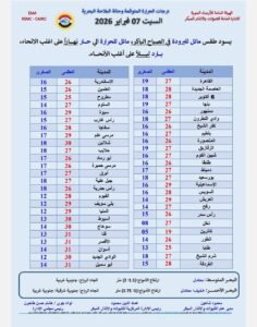 وهذا بيان بدرجات الحرارة المتوقعة والظواهر الجوية..