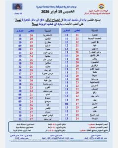 وفيما يلي بيان بدرجات الحرارة المتوقعة والظواهر الجوية..