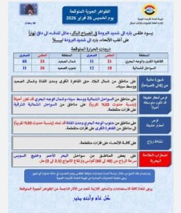 وهذا بيان بدرجات الحرارة المتوقعة والظواهر الجوية..