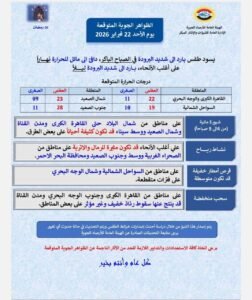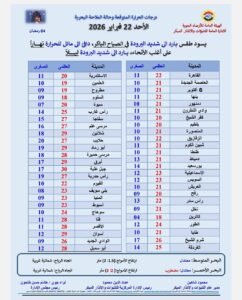 وهذا بيان بدرجات الحرارة المتوقعة والظواهر الجوية..