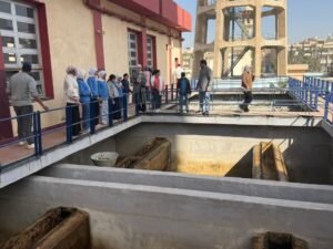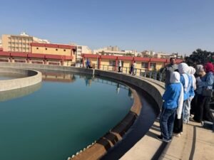 وتضمنت الزيارة جولة داخل المحطة للتعرف على مراحل تنقية المياه بداية من دخول المياه عبر المأخذ، مرورًا بخزانات المياه العكرة والمروقات والمرشحات بمراحلها المختلفة، وصولًا إلى إضافة الكلور النهائي، ثم انتقال المياه إلى الخزانات الأرضية ومنها إلى الشبكات الخارجية لتصل إلى المنازل والمواقع المختلفة التي تغذيها المحطة.