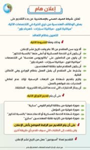 مدة الإعلان: أسبوعين من تاريخ نشر الإعلان.