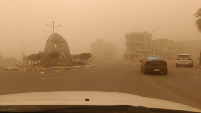 عاصفة ترابية تضرب رأس غارب بالبحر الأحمر