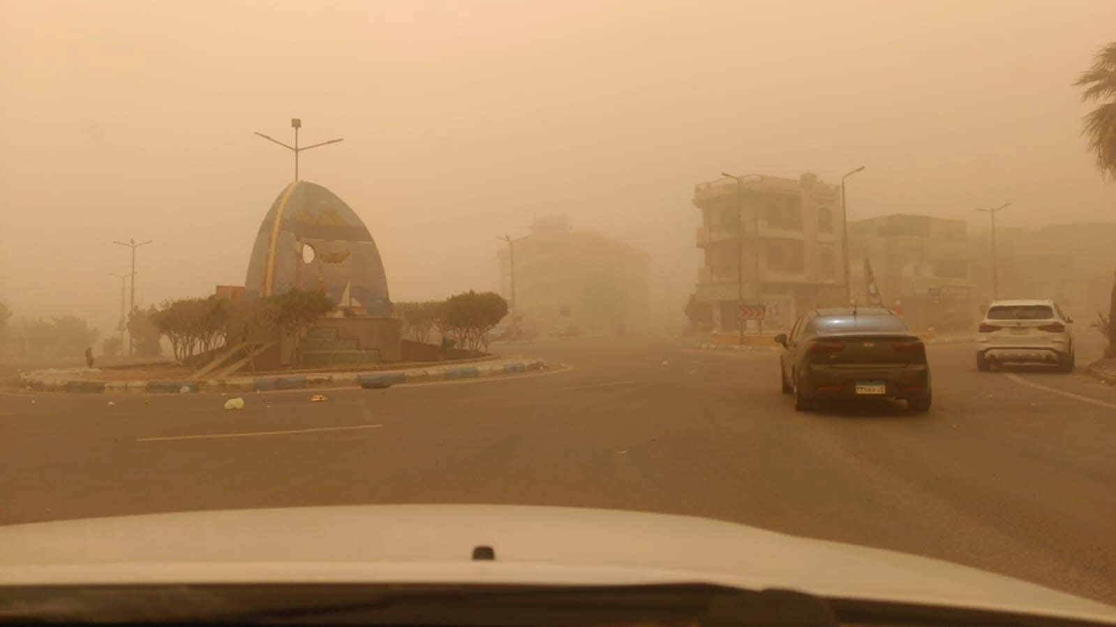 شهدت مدينة رأس غارب بمحافظة البحر الأحمر اليوم عاصفة ترابية شديدة أدت إلى انخفاض مستوى الرؤية في الطرق الرئيسية.