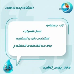 حيث دعت الشركة إلى استخدام دلو وإسفنجة عند غسل السيارات بدلًا من الخرطوم المفتوح، لما يسببه من إهدار كميات كبيرة من المياه دون داعٍ.