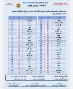 تشهد الملاحة البحرية اضطرابًا على مناطق من: الإسكندرية – البحيرة – سواحل العلمين – كفر الشيخ – دمياط – بورسعيد – العريش – رفح،