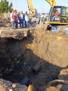 وتابع أيضًا أعمال إصلاح خط رئيسي قطر 500 مم بلاستيك أمام كوبري الجامعة بطلخا المغذي لقرى ميت الكرما والمنشية، بالإضافة إلى متابعة أعمال إصلاح كسر خط مياه قطر 560 مم بولي إيثيلين أمام قرية البنزينة بالحفير شهاب الدين بمركز بلقاس.