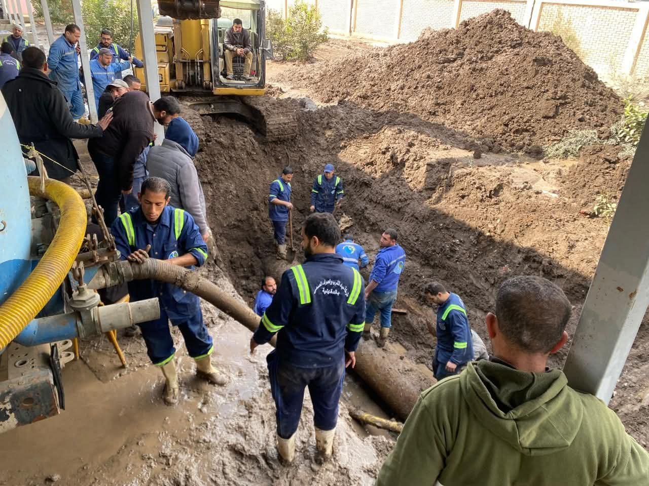 تفقد المهندس محمد سعيد نشأت، رئيس شركة مياه الشرب والصرف الصحي بالدقهلية، اليوم أعمال إصلاح كسر مفاجئ بخط قطر 600 مم زهر مرن، الخاص بمحطة صرف صحي الجامعة.