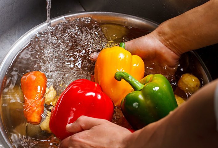 استخدم إناء مملوء بالماء بدلًا من ترك الصنبور مفتوحًا أثناء غسل الخضار لتجنب إهدار المياه.