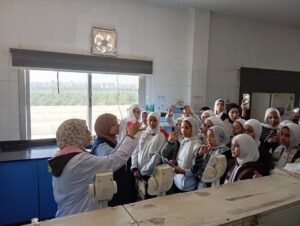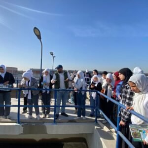 وتضمنت الزيارة شرحًا تفصيليًا لمراحل تنقية مياه الشرب، بداية من دخول المياه عبر المأخذ، مرورًا بالمعامل وآلية رفع عينات المياه في كل مرحلة، والتعريف بأهم التحديات التي تواجه عمليات التنقية، ومراحل إنتاج الشبة والكلور، ثم خزانات المياه العكرة، والمروقات، والمرشحات بمراحلها المختلفة، وصولًا إلى إضافة الكلور النهائي، وضخ المياه إلى الخزانات الأرضية ثم الشبكة الخارجية لتغذية المنازل والمواقع المختلفة التي تخدمها المحطة.