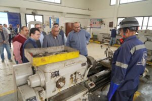 كما تفقد ورشة إصلاح المحابس والتى يتم بها إصلاح وصيانة جميع أنواع المحابس والتى تقوم بأعمال تأهيل وإصلاح 700 محبس سنوياً وورشة إصلاح الطلمبات والتى تقوم بإصلاح وصيانة جميع أنواع طلمبات مياه الشرب والصرف الصحي وصناديق التروس وجميع الأعمال الميكانيكية من خراطة وكشط ولحام.