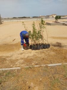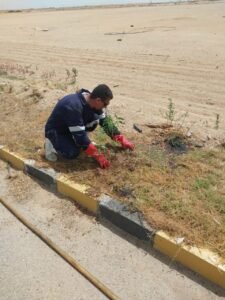 وفي ظل التوسع في المساحات الخضراء ولتحقيق استيعاب أكثر لكميات المياه المنتجة كوسيلة للتخلص الآمن من مياه الصرف الصحي المعالج،  تقوم الشركة بتنفيذ خط ري قطر 1 بوصة يعمل بنظام الرشاشات لتطوير منظومة الري داخل المحطة وزراعة ألف شجرة حول أسوار المحطة لتقليل البصمة الكربونية.