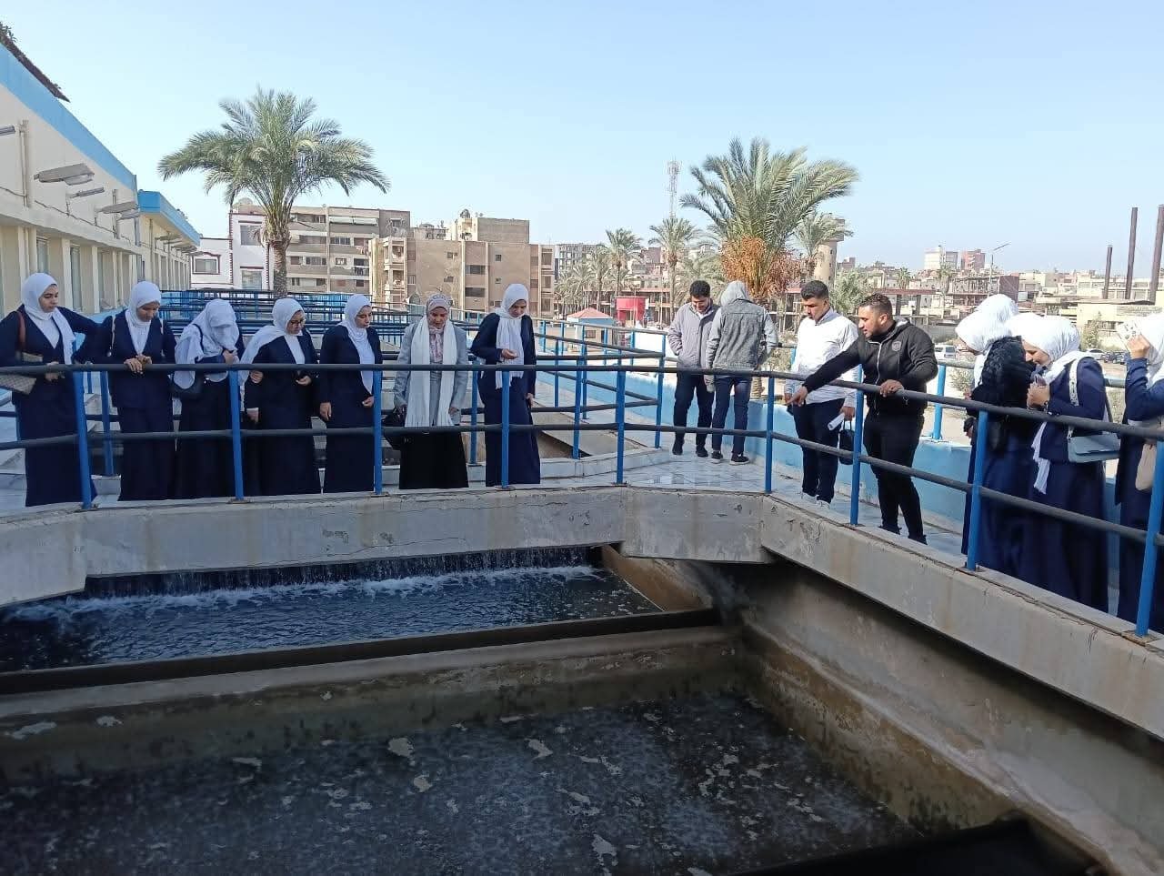 اصطحب فريق التوعية بالشركة طلاب الكلية في جولة تفقدية داخل المحطة للتعرف على مراحل تنقية المياه بدءًا من سحب المياه الخام وحتى وصولها للمستهلك بجودة مطابقة للمواصفات القياسية.