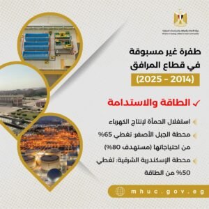 وأوضح أن الوزارة نجحت في تحقيق طفرة غير مسبوقة في مشروعات تحلية مياه البحر، حيث ارتفعت الطاقة الإنتاجية من 84 ألف متر مكعب يومياً عام 2014 لتصل حالياً إلى نحو 1.42 مليون متر مكعب يومياً من خلال تشغيل 126 محطة تحلية في محافظات شمال وجنوب سيناء، البحر الأحمر، مطروح، الإسماعيلية، السويس، بورسعيد، الدقهلية والبحيرة، وأشار إلى أن العمل جارٍ على تنفيذ 11 محطة جديدة بطاقة 310 آلاف متر مكعب يومياً في عدد من المحافظات منها مطروح والإسكندرية، ليصل إجمالي الطاقة إلى 1.73 مليون متر مكعب يومياً، مع خطة مستقبلية للوصول إلى 9.8 مليون متر مكعب يومياً بحلول عام 2050.