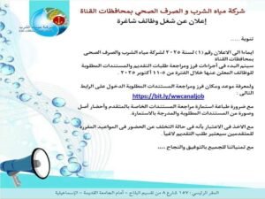 بدء فرز ومراجعة طلبات وظائف شركة مياه القناة مطلع أكتوبر