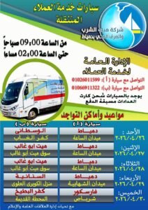 أعلنت شركة مياه الشرب والصرف الصحي بدمياط عن خطة تواجد سياراتها المتنقلة لتقديم كافة خدماتها للمواطنين، من الساعة 09:00 صباحًا وحتى 02:00 مساءً، وفقًا للمواعيد والأماكن التالي: