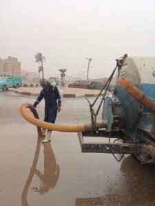 وفى إطار الاستجابة السريعة لمواجهة آثار موجة الطقس السيئ، تم الدفع بعدد من سيارات ومعدات الشركة الخاصة بأعمال الكسح وشفط المياه للتعامل مع تجمعات مياه الأمطار ببعض الشوارع والميادين والمراكز، مع انتشار فرق المتابعة الميدانية التي تقوم برصد تأثيرات التقلبات الجوية على خدمات المياه والصرف الصحي، واتخاذ الإجراءات الفورية للتعامل مع أي أعطال طارئة بما يضمن استمرارية المرافق الحيوية.
