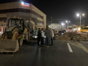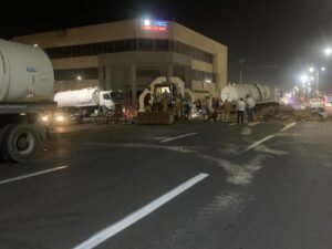 وفور التوصل لأسباب الهبوط الأرضي والناتج عن كسر مفاجئ بخط مياه تم توفير كافة المعدات اللغازمه للتعامل مع الكسر على وجه السرعه والانتهاء من الصيانة.