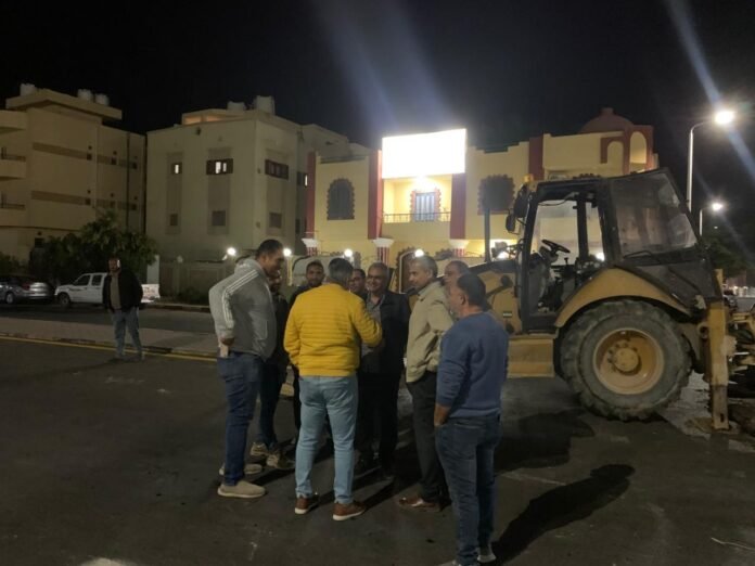وفور التوصل لأسباب الهبوط الأرضي والناتج عن كسر مفاجئ بخط مياه تم توفير كافة المعدات اللغازمه للتعامل مع الكسر على وجه السرعه والانتهاء من الصيانة.