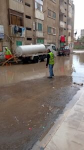 وقال المهندس عبد المنعم أبو خليل: “تم الدفع بفرق الشبكات وسيارات شفط المياه إلى جميع نقاط التمركز المحددة مسبقًا، خاصة بالمناطق الأكثر احتياجًا للتدخل السريع، ونعمل بتنسيق كامل وعلى مدار الساعة لضمان رفع تراكمات مياه الأمطار أولًا بأول، وعدم السماح بتأثر الشوارع أو تعطيل حركة المواطنين. وجميع فرقنا في حالة استعداد كامل للتعامل الفوري مع أي بلاغات أو مستجدات.”