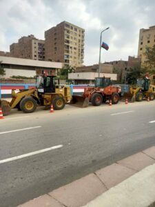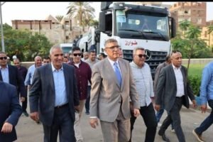 تفقد المهندس عادل النجار، محافظ الجيزة، يرافقه المهندس منصور بدوي، رئيس شركة مياه الشرب والصرف الصحي بالجيزة، اصطفاف معدات الشركة المنتشرة بمحيط المتحف المصري الكبير.