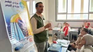 وشملت الندوات توعية الطلاب بأهمية ترشيد استهلاك المياه والتخلص الآمن من مخلفات الصرف الصحي، مع التركيز على مخاطر الطلمبات الحبشية. كما تم تنفيذ ورش عملية لتعليم مبادئ السباكة الخفيفة وإصلاح دورات المياه بالمدارس للحد من هدر المياه، إلى جانب شرح مراحل تنقية مياه الشرب.