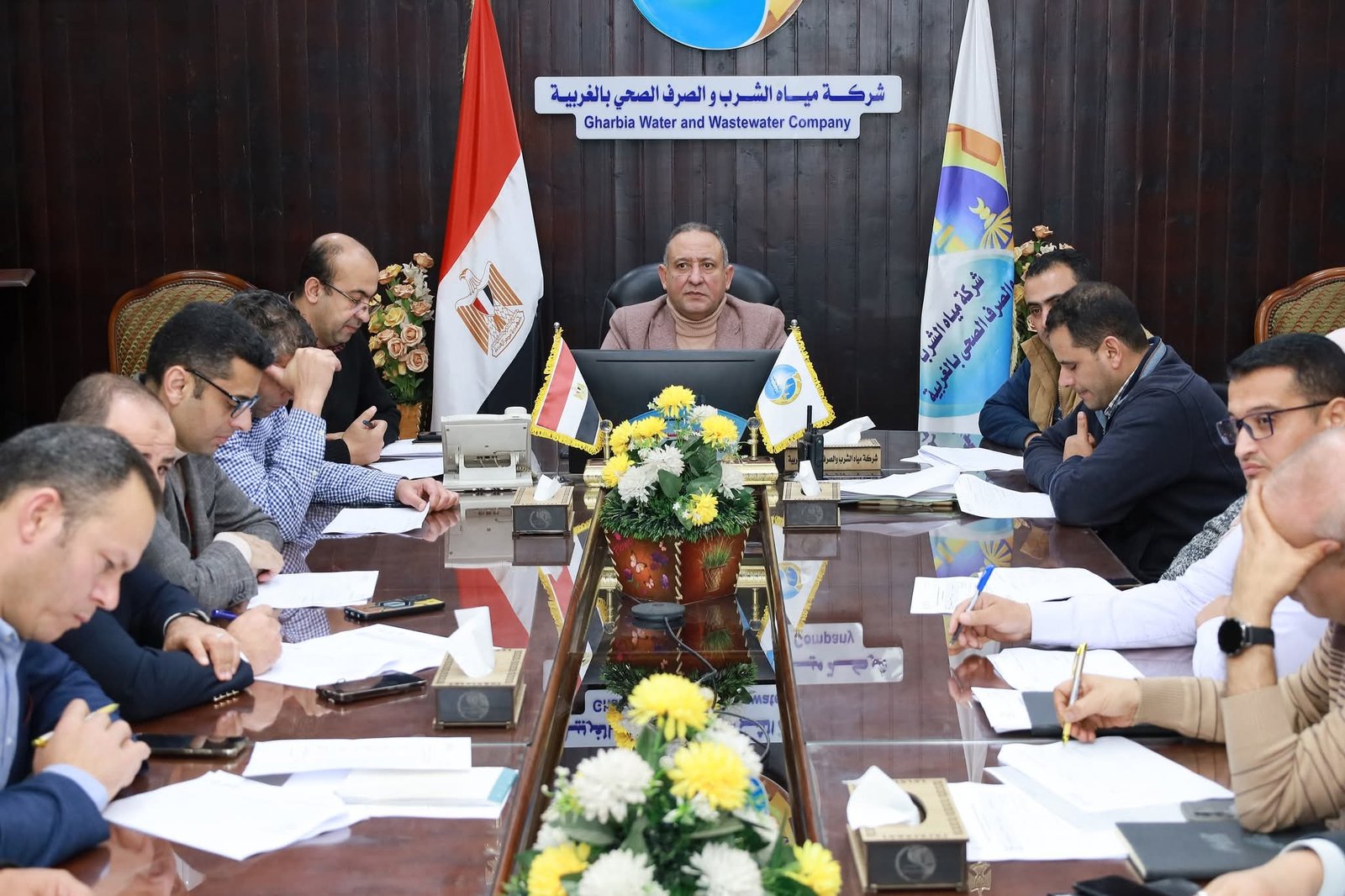 تراس اللواء محمد عبد الفتاح، رئيس شركة مياه الشرب والصرف الصحى بالغربية، اليوم، اجتماع لجنة الاشراف الشهرى على إعداد خطط سلامة ومأمونية المياه ومأمونية تداول الصرف الصحى.