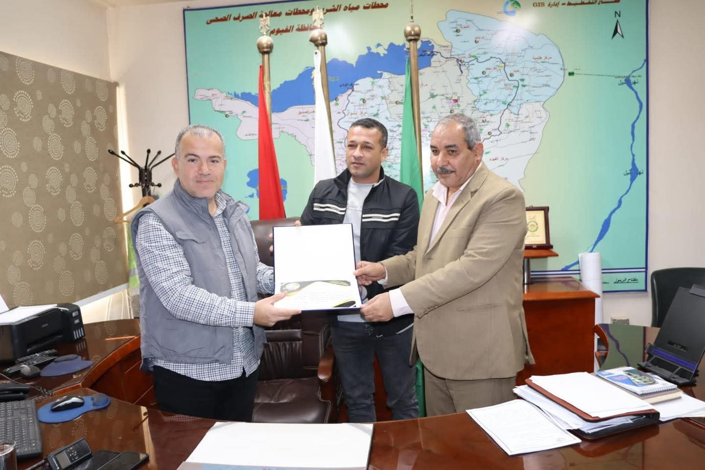 كرّم المهندس وليد سعيد، رئيس شركة مياه الشرب والصرف الصحي بالفيوم، أحمد علي صالح، المُحصِّل بالقطاع التجاري فرع الفيوم، تقديراً لأمانته وإخلاصه في أداء مهام عمله وتميّزه في الالتزام بالقيم المهنية.