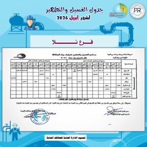 أعلن المهندس رشدي السيد عمر ، رئيس شركة مياه الشرب والصرف الصحى بالمنوفية، خطة غسيل شبكات المياه بكافة مناطق المحافظة خلال شهر أبريل 2026م وفقًا للمناطق المحددة بجدول الغسيل الدورى للشبكات.