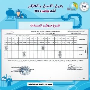 الرئيسيةالقابضة وشركاتهامياه المنوفية تعلن خطة غسيل الشبكات خلال شهر نوفمبر 2025