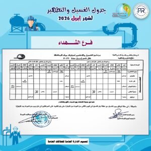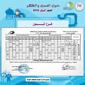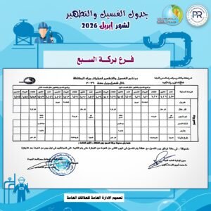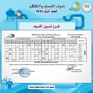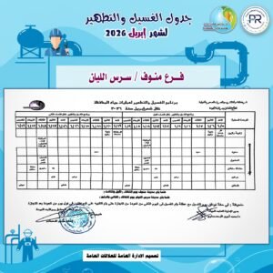 أعلن المهندس رشدي السيد عمر ، رئيس شركة مياه الشرب والصرف الصحى بالمنوفية، خطة غسيل شبكات المياه بكافة مناطق المحافظة خلال شهر أبريل 2026م وفقًا للمناطق المحددة بجدول الغسيل الدورى للشبكات.