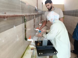 وأضاف قام فريق قطاع المعامل ومراقبة الجودة بالمرور على عدد من منازل القرية لأخذ عينات عشوائية للمياه وتحليلها في الحال، وكانت جميعها مطابقة للمواصفات القياسية كما تمكن القطاع التجاري من الكشف على وصلات الخلسة وضبط عدد من الحالات والتوعية بمخاطرها وتحصيل المتأخرات من الفواتير ضمن فاعليات القافلة المائية بالقرية .