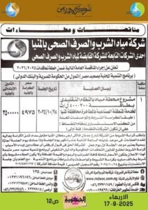 وأوضح البيان أن المناقصة تأتي ضمن خطة تعاقدات عام 2025/2026 في إطار برنامج التنمية المحلية بصعيد مصر الممول من الحكومة المصرية والبنك الدولي، بهدف رفع كفاءة البنية التحتية ودعم المناطق الصناعية بالمحافظة.