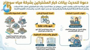 أعلنت شركة مياه الشرب والصرف الصحي بسوهاج عن بدء تحديث بيانات كبار العملاء، بهدف ضمان دقة وسلامة بيانات الاشتراكات.