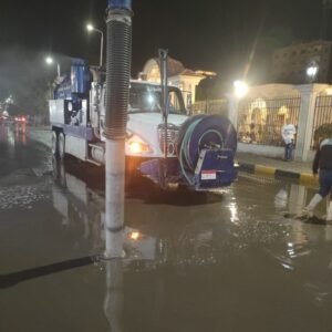 واصلت فرق التشغيل والطوارئ بشركة مياه الشرب والصرف الصحي بشمال وجنوب سيناء أعمال رفع تجمعات مياه الأمطار التي شهدتها بعض مدن جنوب سيناء ، عقب الهطول المفاجئ على عدد من الشوارع والطرق.