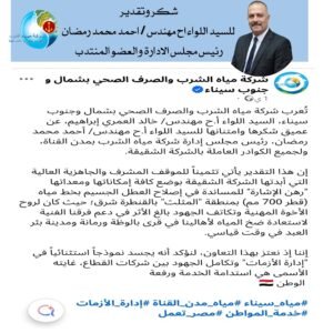 «مياه سيناء» تشيد بنظيرتها «القناة».. لهذا السبب