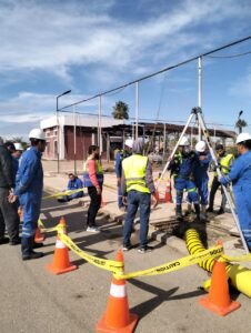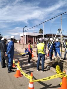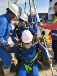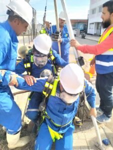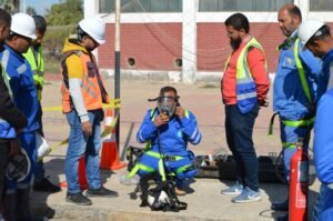 حاضر في البرنامج التدريبي أيمن كشكوشة، متضمنًا شرحًا وتطبيقًا عمليًا لإجراءات الدخول الآمن إلى الأماكن المغلقة ومتطلبات السلامة المهنية أثناء العمل.