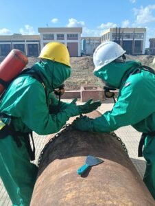 وتضمّن التدريب شرحًا عمليًا لأحدث أساليب التعامل مع أخطار غاز الكلور، وطرق العزل الآمن، ومهارات استخدام مهمات الوقاية الشخصية، إضافة إلى تنفيذ محاكاة واقعية لسيناريوهات مختلفة للتسريب بهدف رفع كفاءة الاستجابة السريعة لدى العاملين.