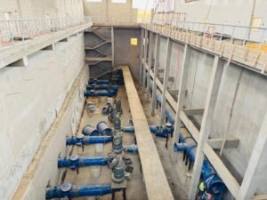 كما شملت الجولة تفقد مشروع الخزانات الأرضية، والتي تُعد من المشروعات الاستراتيجية لتأمين إمدادات مياه الشرب، حيث تعمل على تغذية مناطق 607، وسكن مصر الداون تاون، وإبني بيتك 7، وحورس، والإسكان المتوسط، من خلال 4 خزانات بسعة إجمالية تصل إلى 80 ألف متر مكعب يوميًا، بما يساهم في تحقيق الاستقرار المائي وتلبية احتياجات التوسعات العمرانية.