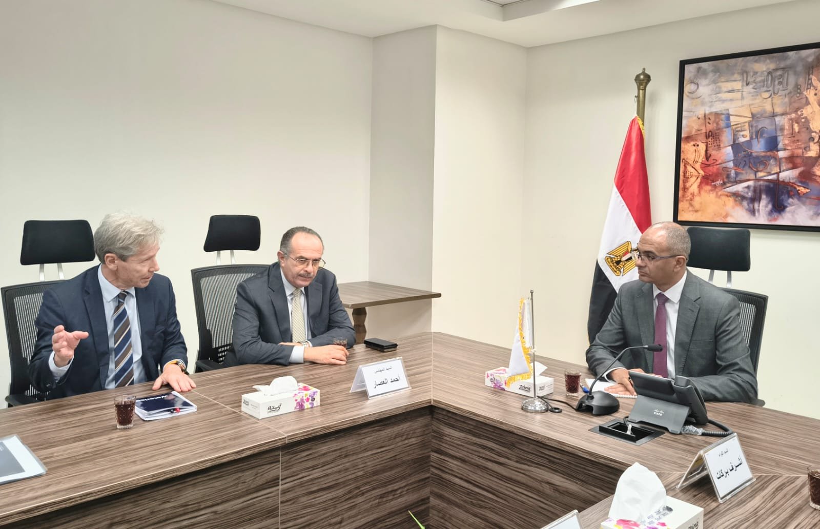 التقي الدكتور سيد اسماعيل نائب وزير الإسكان والمرافق والمجتمعات العمرانية مسئولي تحالف شركة المقاولون العرب مع إحدى الشركات العالمية المتخصصة في إنشاء وتشغيل وصيانة محطات تحلية مياه البحر بحضور مستشار الوزارة لشئون المتابعة والمشروعات والمرافق ونواب رئيس مجلس إدارة الشركة القابضة وممثلي وحدة إدارة المشروعات بالوزارة PMU ورئيس مجلس إدارة شركة المقاولون العرب.