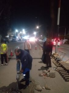 وتم التحرك الفوري إلى موقع العمل، حيث بدأت الفرق في تنفيذ أعمال الإصلاح واتخاذ كافة الإجراءات الفنية والتأمينية اللازمة لتأمين الموقع، بما يضمن الحفاظ على سلامة المواطنين ومستخدمي الطريق، ومنع أي مخاطر محتملة خاصة خلال فترات الليل.